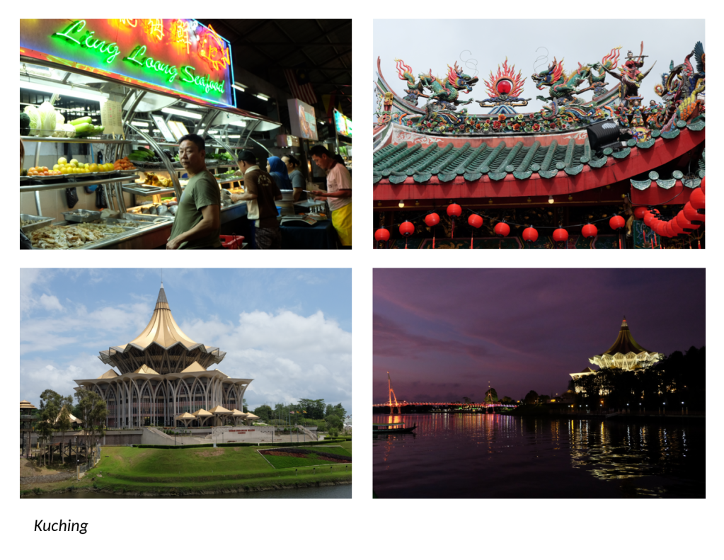 Resztę popołudnia można przeznaczyć na zwiedzanie Kuching. Jako że główny budynek Sarawak Museum jest zamknięty (stan na marzec 2018), warto odwiedzić Sarawak Art Museum, w budynku obok. Szczególnie polecam cześć wystawy poświęconą lokalnej kulturze.