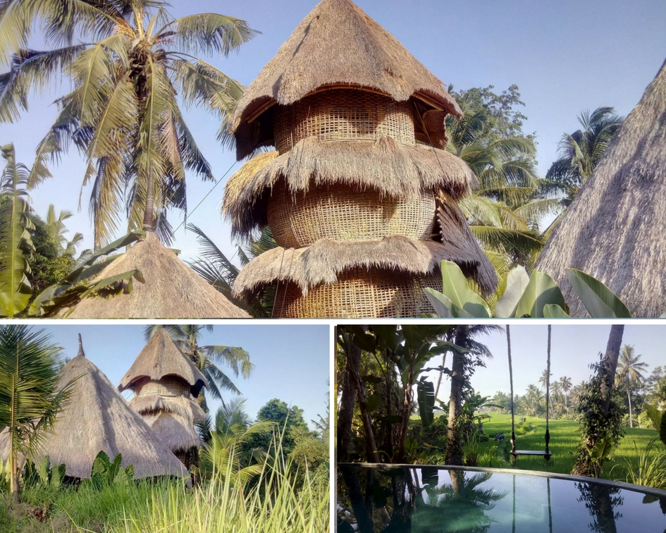 Coś dla miłośników natury i spania w ekscytujących warunkach. Kompleks wysokich gniazd z bambusa (ale też normalnych pokoi) położonych w środku pola ryżowego. Wydaje się, że miejsce jest położone na kompletnym bezludziu, ale idąc polną drogą w ok. 10-15 minut dojdziecie do drogi asfaltowej która prowadzi do Ubud.