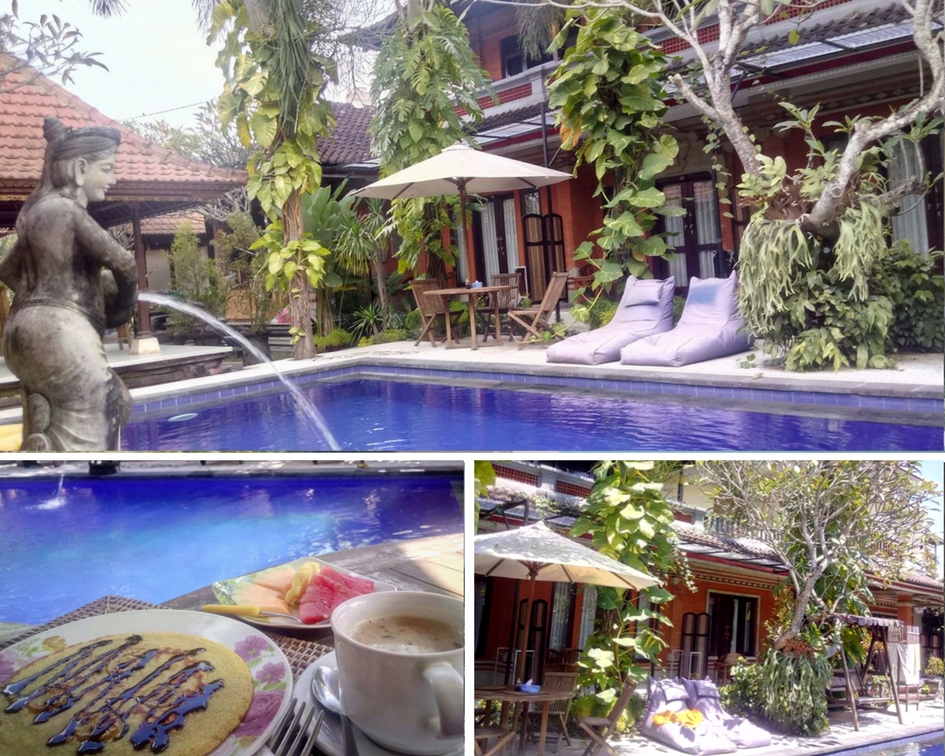 Bardzo komfortowe miejsce na typowy relaksujący wypoczynek. Najpiękniejszy ogród jaki widziałam na Bali! Ogromny, zadbany, z zielonymi roślinami dosłownie wszędzie, które prawie „wlewają” się do pokoju. Do tego rośliny są tak dobrane, że przyciągają motyle i odstraszają komary. No i jest tu świetny basen z wygodnymi leżakami, a w wolnej chwili można wziąć udział w lekcjach rzeźbienia w drewnie (z tego słynie okolica).