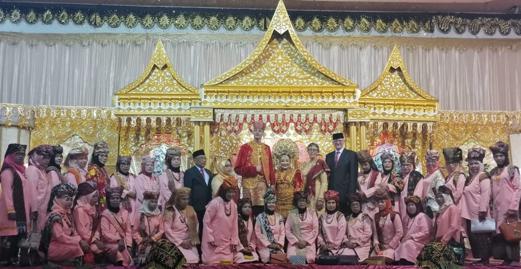 Po ceremonii było oczywiście jedzenie! W tym bufet z ryżem, wołowiną rendang, ayam bakar (pieczony kurczak), pergedel (ziemniaczany klops), a także sup telur tuyuh (zupa z jajkiem). Gości było tyle, że nie dla wszystkich starczyło miejsca przy stołach – my zostaliśmy zaproszeni do środka domu, do zjedzenia posiłku na kanapie. Zrobiło się naprawdę domowo, atmosfera się rozluźniła, a ciotki zaintonowały karaoke, przy akompaniamencie lokalnego zespołu. Cała ceremonia skończyła się po obiedzie – goście rozeszli się do domu, a my pojechaliśmy zwiedzać zieloną dolinę Harau (wciąż mając na sobie eleganckie stroje weselne, ale przez to fajnie wyglądamy na zdjęciach).