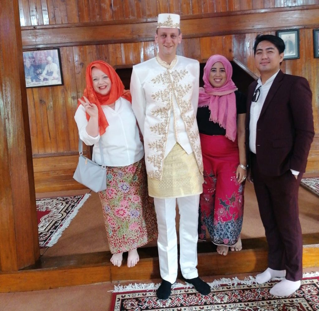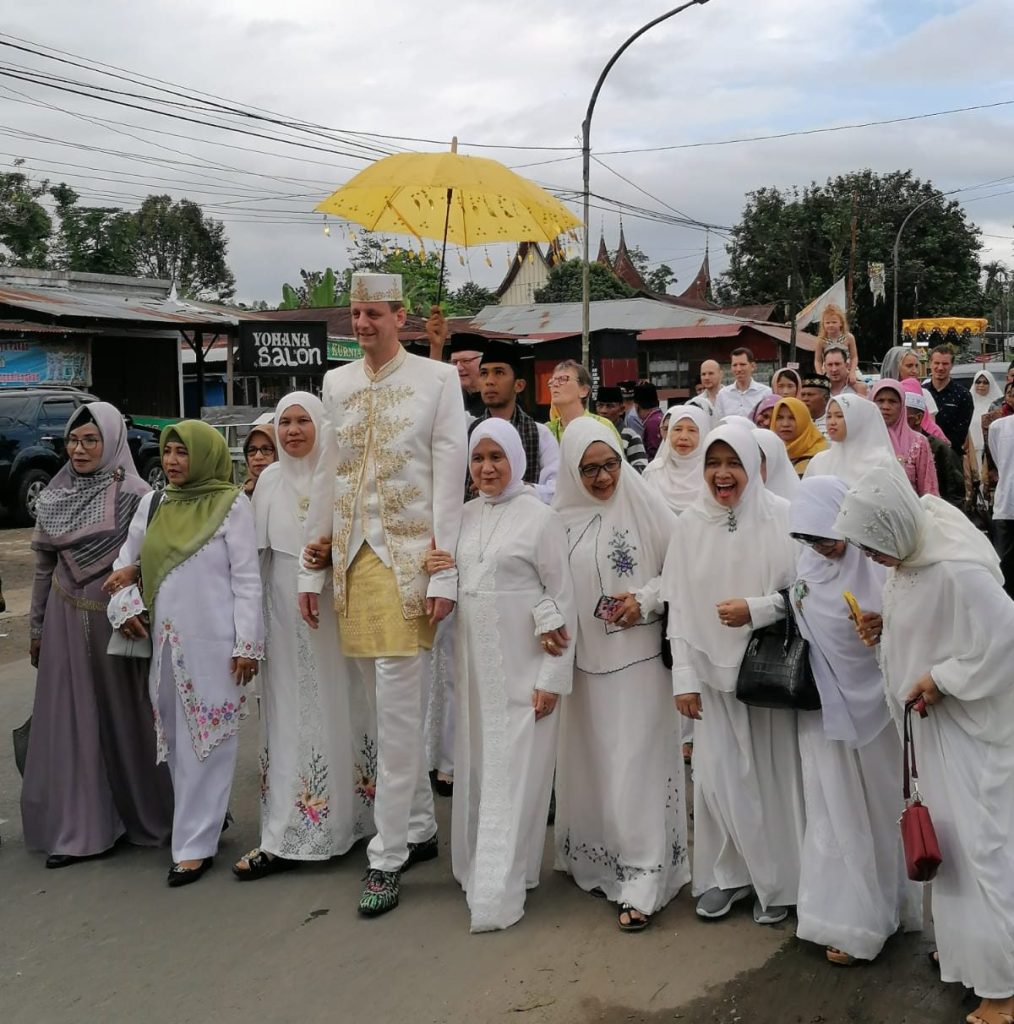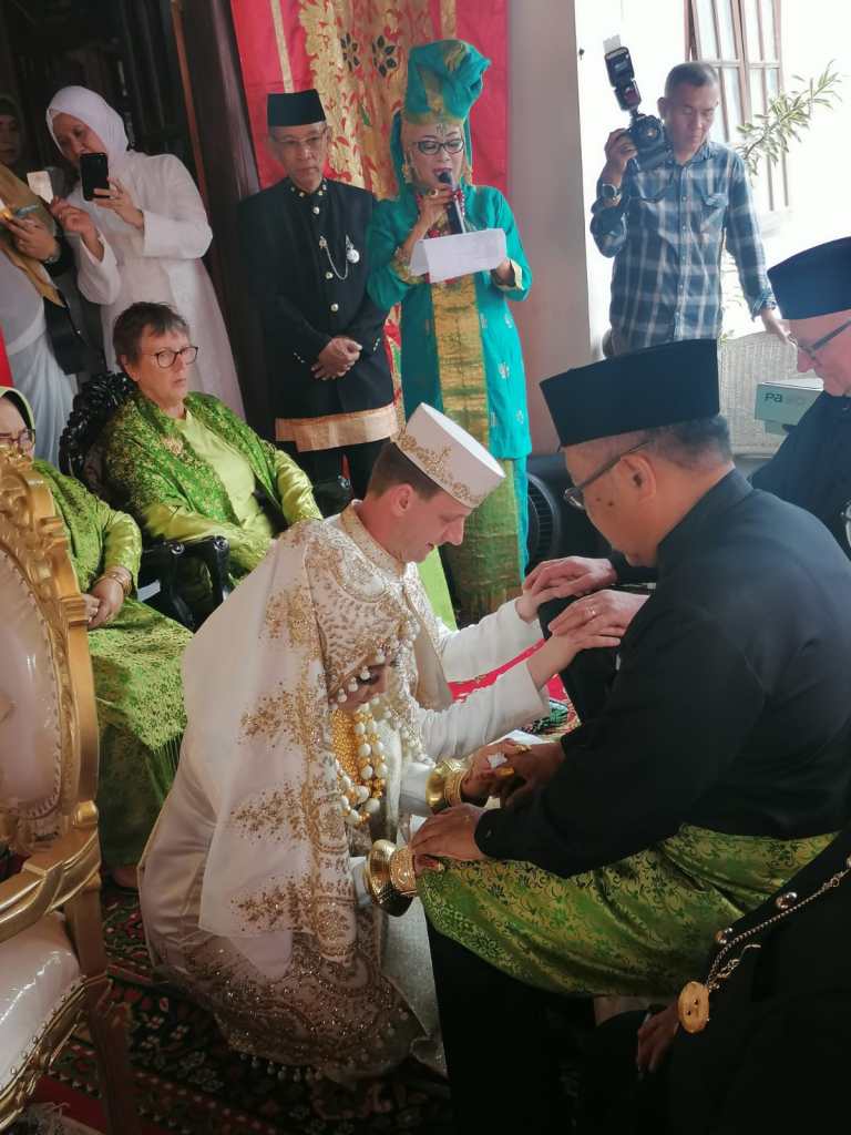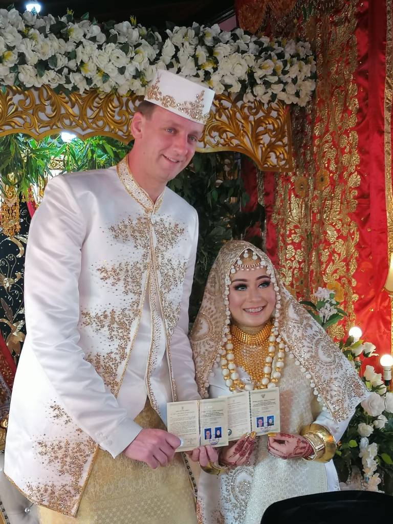 Dopiero po jakimś czasie na werandę została wprowadzona Panna Młoda. Rozpoczęły się podziękowania matce i ojcu, bardzo przejmujące, bo wygłaszane przez Ammy na kolanach i ze łzami w oczach. Dopiero potem nastąpiło końcowe podpisanie dokumentów i wręczenie parze ich certyfikatów małżeństwa – są one w Indonezji bardzo ważne, bo pary żyjące bez ślubu nie mogą np. wynająć wspólnie pokoju w hotelu. No i oczywiście, ceremonia była całkowicie halal, więc nie było pocałunku między małżonkami – był natomiast przepiękny moment okazywania sobie uczuć w inny sposób – zobaczcie zdjęcia poniżej. Bart parę miesięcy przed ceremonią oficjalnie zmienił wyznanie na islam – było to wymagane aby ślub doszedł do skutku.
