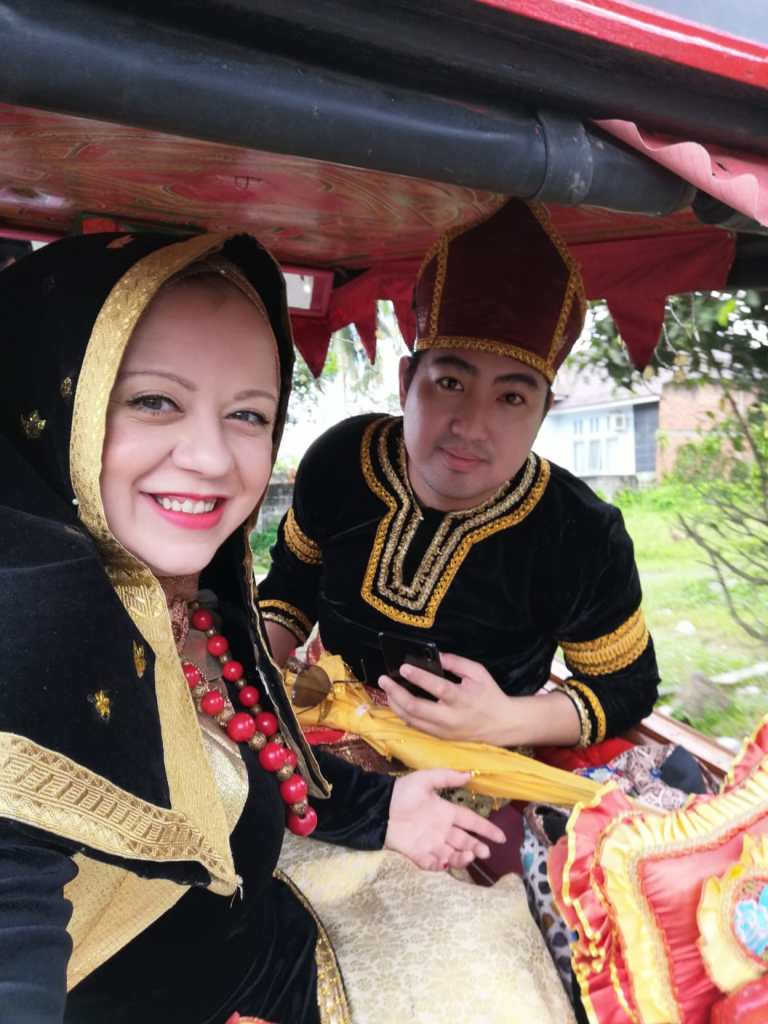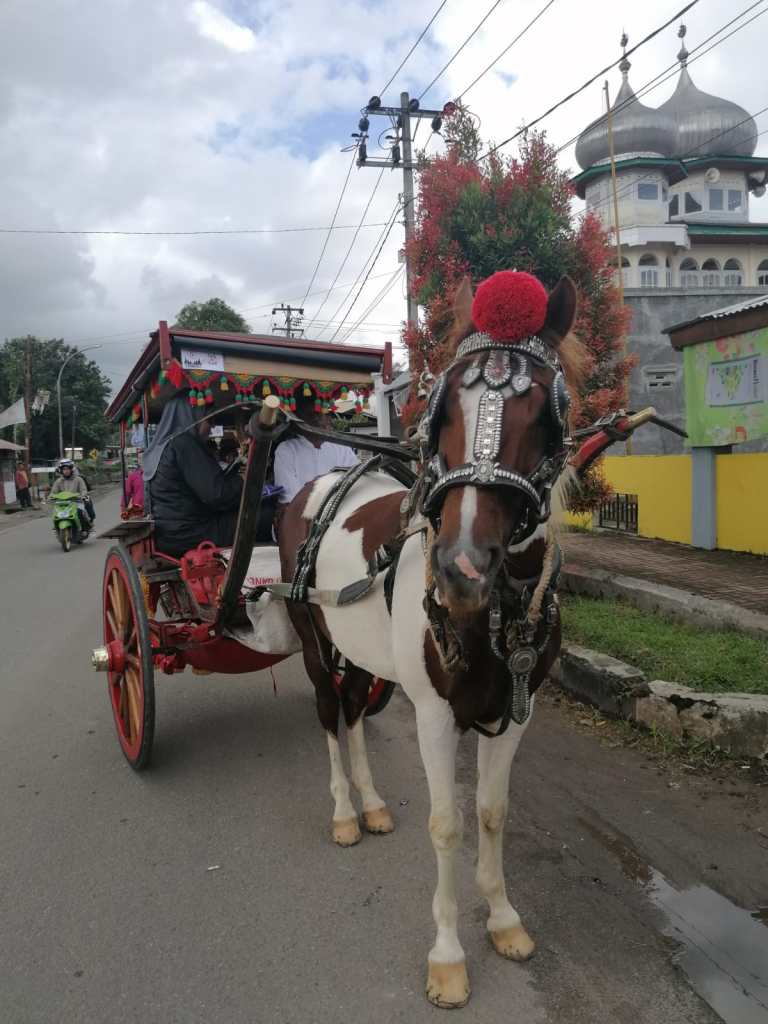 To był dzień na który czekałam najbardziej! Po pierwsze, Ammy zaproponowała że mogę jako bliska osoba, dostąpić zaszczytu założenia tradycyjnego stroju z kultury Mingkabau. Po drugie – na wesele mieliśmy się dostać kolorowo udekorowanymi bryczkami konnymi!